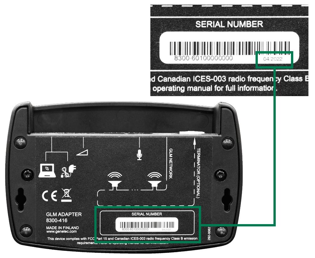 ※GLMネットワーク・アダプターの製造年は、底面のシリアル・ナンバーの隣に記載されています。
